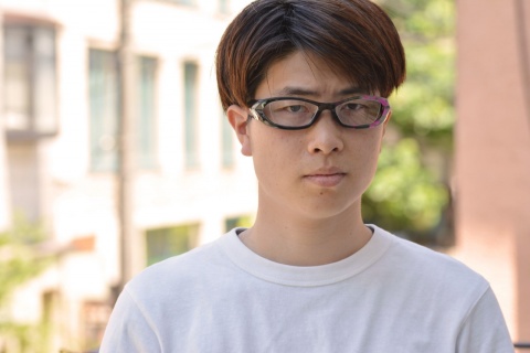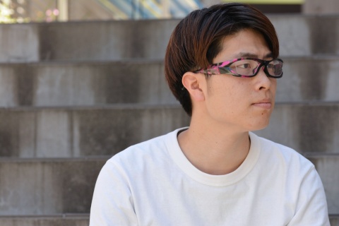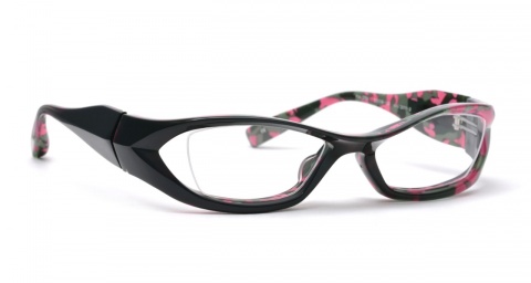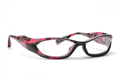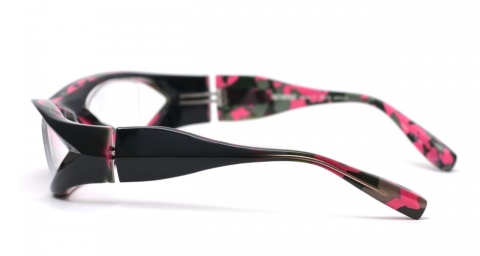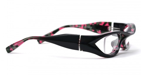 「col.2011-1」はフロント、テンプルともに右側にピンク迷彩があらわになるクリア系のパープルをトップに張り合わせいています。