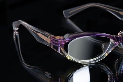 パープル×イエローのツートンカラー、さらに今回のテーマである”トランスペアレント”の名の通り、クリアカラーを引き立てるゴールドメッキを施した金属パーツは、ブランドとしても初の試みになります。