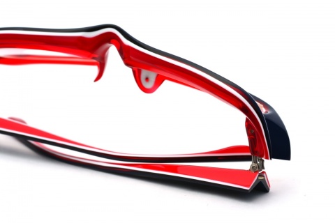 「この造形はそう作り出すことはできない」、デザイナー青山が言い切るほど完成度の高い「FA-312」は、V字テンプルからフロントブリッジの逆R面まで滑らかなカット面でつなぎ、さらにフレームの裏面も流麗なラインでカタチづくられたことで、どの角度から見えてもよどみのない美しいフォルムとなりました。