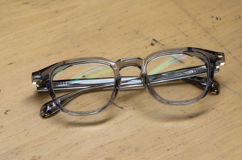「RF-034」は、フロントリムに厚みの強弱をつけ、ブリッジにも凹凸があり、さらに前面にも面カットを施すなど、細部の磨きは手間がかかりますが、心配していた黄ばみもキレイに落とすことができました!