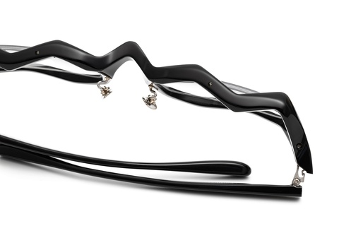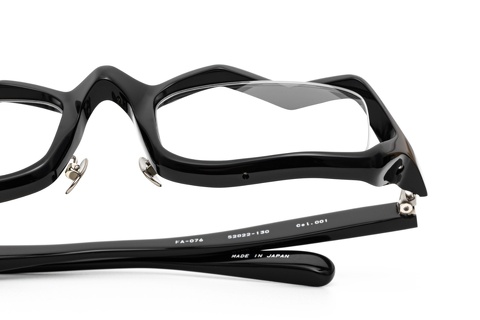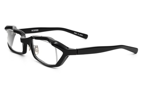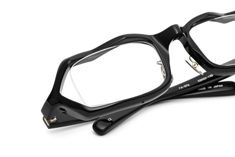 正面からご覧いただくとオーソドックなスクエア、しかし見る角度を変えると上下で異なる独特なリムの形状がその姿を現します。過去のブログでは、TOKYO BASE・OSAKA BASE限定カラーにて商品詳細についても触れておりますが、やはりソリッドな「col.001」(黒)は、プロダクト本来の姿がダイレクトに伝わりますね。