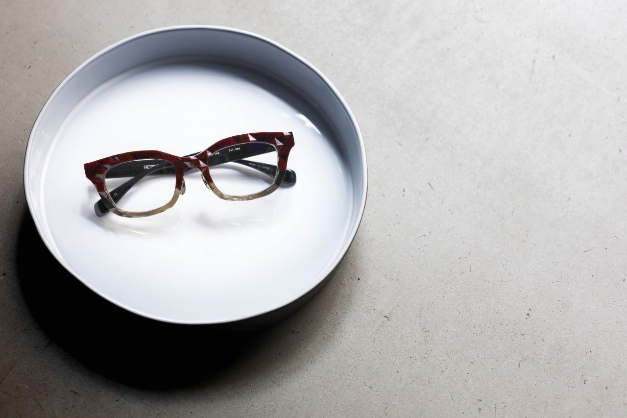 たまたま私がお店に足を運んだ際に、偶然一緒に居合わせた女性。初めましての方でしたが、一緒に居合わせると何故か皆でお話が始まる不思議なumeさんのお店。そこで眼鏡のお話をしたところ興味をお持ちいただきご来店いただきました。普段はかけていなくて手元用のみ。せっかくならデザインで遊んでみましょうということで、たくさんかけていただきました。何をかけてもお似合いになりましたが、この方も最後に私の眼鏡「RF-066」を見て急に変わりRF-064Cに決定しました。このダイヤモンドカットがとてもいい!ということと、赤とグレーのツートンがお持ちのワードローブとの相性も良さそうということで最後はすぐ決まりました。このダイヤモンドカットに負けない、お洋服のセンスもお持ちで、ファッションを楽しんでいらっしゃる様子にほっこりさせていただきました。