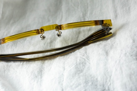 フロントのイエローとテンプルのイエローが違う色なのも、ポイント高いです。とても鮮やかなため、可愛いと思ってもかけにくいのでは?と躊躇される方もいらっしゃいますが、とりあえずかけていただくと、大体似合います。やはり黄色が好きな方は黄色の取り入れ方がとても上手な気がしますね。