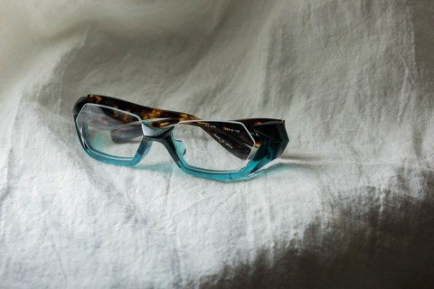 多面体で構成された、ちょっと太めの立体感あるアンダーリム。アンダーリムでこれだけレンズの天地幅のあるものはなかなかないのはないでしょうか?このごつさゆえに男性向きに思われがちな「FA-375」ですが、カラーが多彩で透明感あるカラーもあることから、海外では女性のお客様にも人気のあるデザインとなっているようです。天地幅がしっかりとあるため大きく見えますが、実はサイズ感は割と小ぶりだったりもします。実際に着用してみていただくのがいいデザインですね。