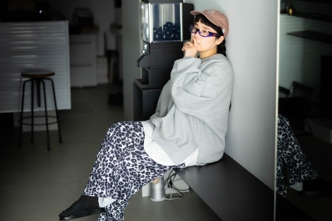 お団子にして、前髪ぱっつんのため、アンダーリムとの相性は抜群です。「FA-375」の肉厚にも負けないボリューム感のあるスタイリングで、全体をまとめてみるとスッキリしますね。