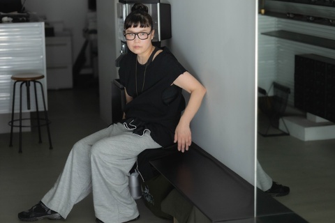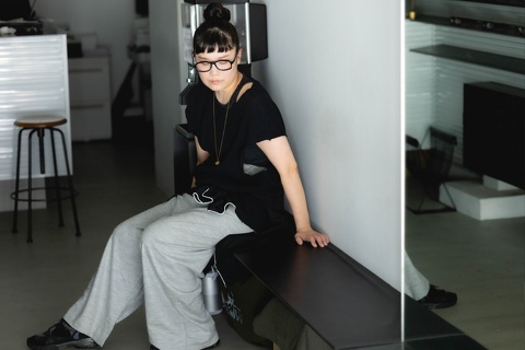 この日もあえてルームウェアに近しいものをスタイリングしました。特にグレーのスウェットは部屋着感が出やすくなるので、黒などの締め色の面積を増やし、シャツを腰に巻き、部屋着感を中和させてみました。