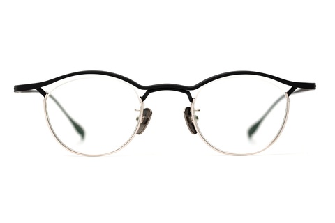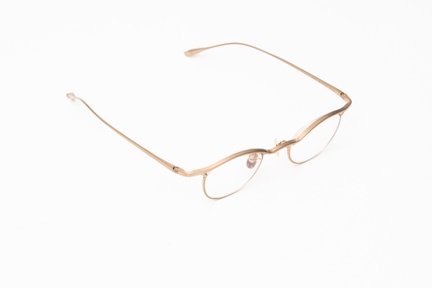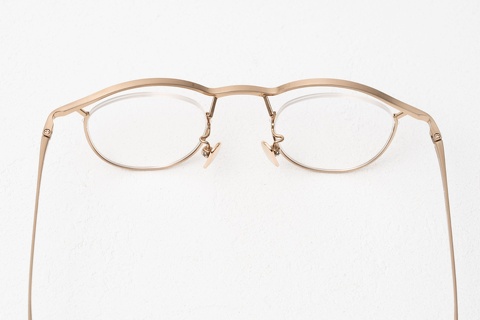 「Titanos × FACTORY900」と同様に、リムの上部をナイロールにより固定するハーフリム構造。せり出たブローバーなど、チタン素材では非常に難易度の高い複雑な構造がシンプルに見えるメタルフレームに立体感を宿します。