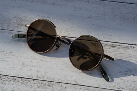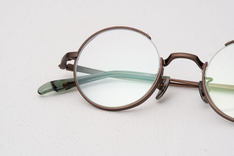 昨年末、ようやく発売開始となった「YOSHINORI AOYAMA」「YA-020」に、レンズメーカーHOYAから発売の可視光線調光レンズ”SENSITY DARK”ダークブラウン”の組み合わせになります。近年では1年を通して人気の調光レンズ、TOKYO BASEの人気は”ダークグリーン”になりますが、今回はフレームカラーの「col.04」(ダメージブラウン)に合わせ”ダークブラウン”をお選びいただきました。