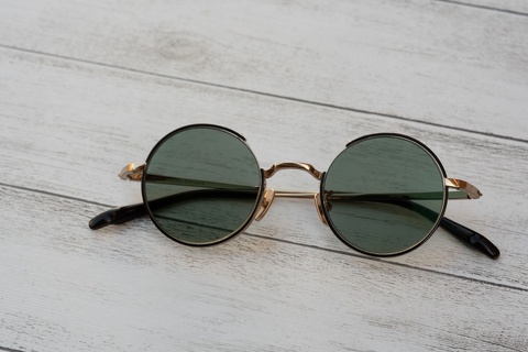ご覧のように、写真では目の表情が伺える濃度になりますが、撮影した場所が日陰ということもあり、本来日差しのもとではさらに濃度は濃くなります。レンズが発色したことでラウンドシェイプが際立ち、どこかモードな雰囲気も漂います。きれいめなシンプルな装いにはもちろん、レザージャケットなど、ハードなアウターに合わせてみるのもアリではないでしょうか。