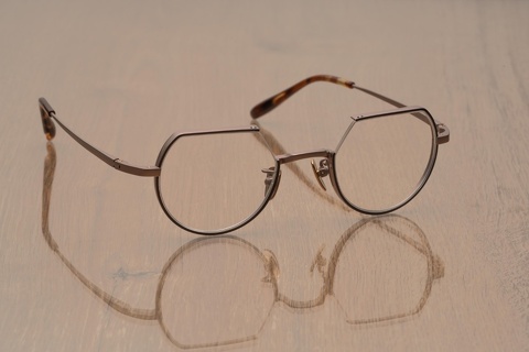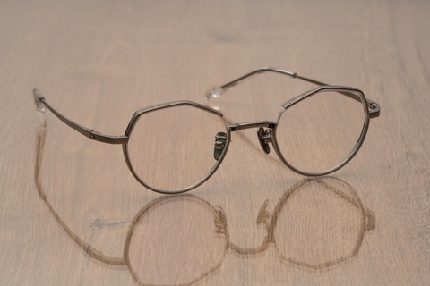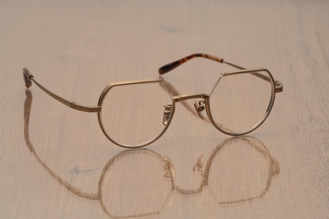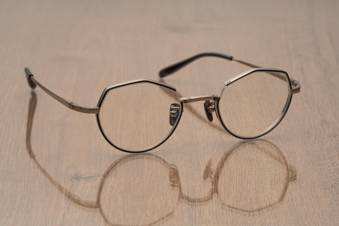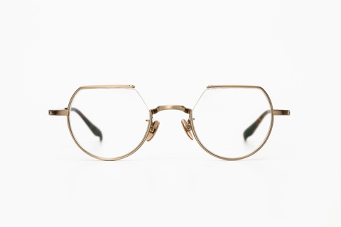 1stモデル同様、レンズを支えるメタルリムの一部を切り離した特徴的なデザイン。特に「YA-022」は、直線的なトップリムがよりアーティステックな印象を与えます。気になるサイズ感ですが、1stモデルの2型と同じ43mm・鼻幅22mmとやや小ぶりです。しかし、特徴的なレンズシェイプということもあり、同じサイズ感のラウンド型よりも大きく感じます。