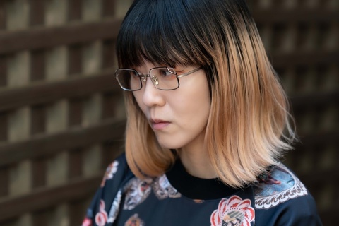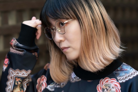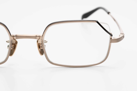 ラウンド型をベースに、レンズを支える左右のリムを折り紙のように内側に折り込んだ「YA-030」