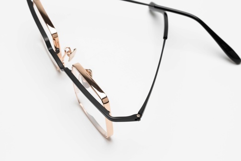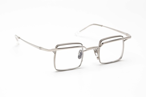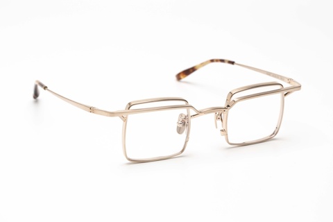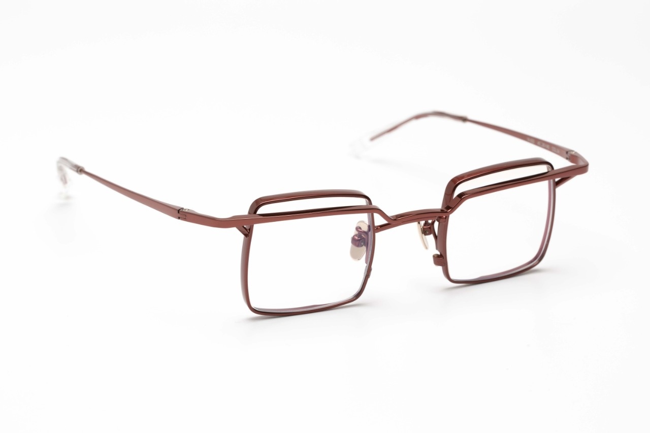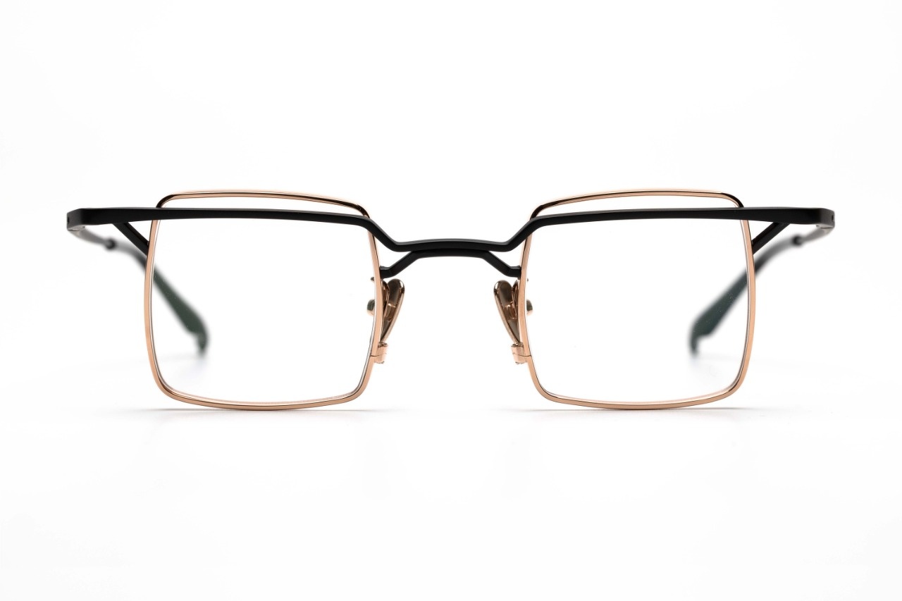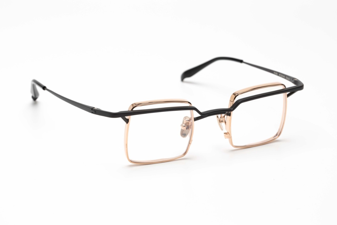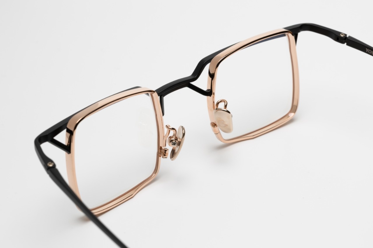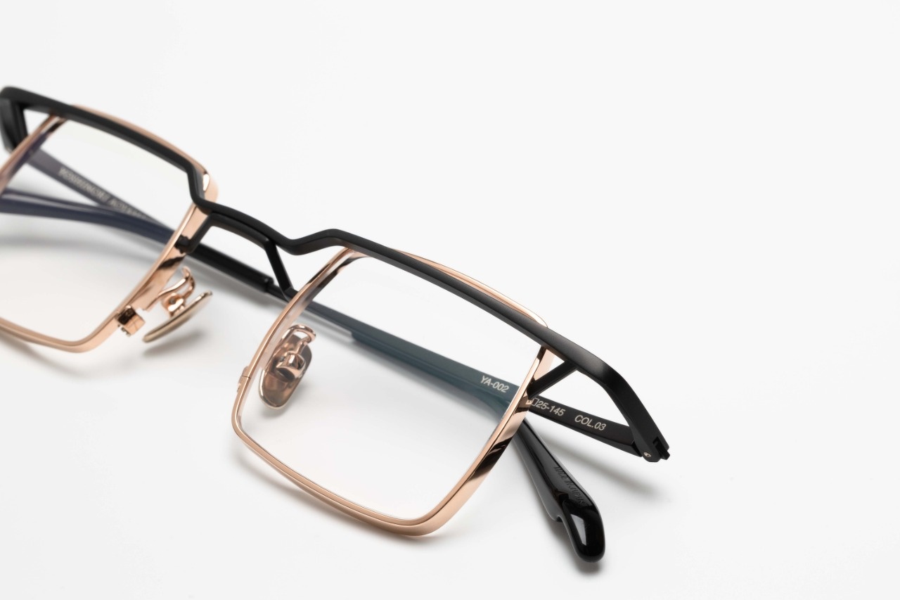フラッグシップモデルとされる「YA-001」からの流れを汲む「YA-002」は、直線的なブローバーにスクエア型のリムを組み合わせた立体構造。レンズシェイプもスクエア型といったものの、ご覧の通り特徴的なシェイプということもあり、どこかアーティスティックな印象を受けます。