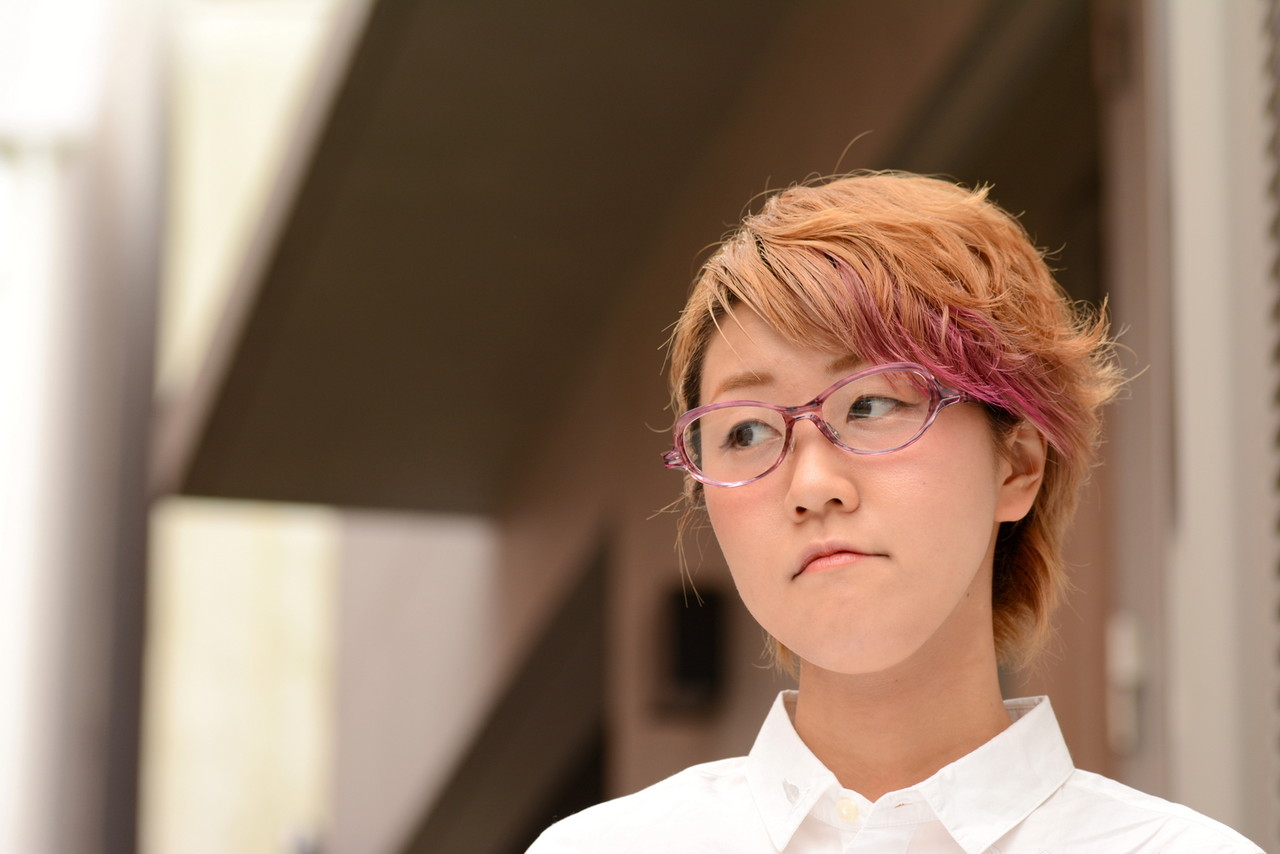 今までダテメガネを掛ける機会は意外と少ないとのことでしたが、ここ最近丸メガネに興味を持たれていたとのこと・・・小顔の上木さんには、ややオーバー気味のサイズですが、このハズしたサイズ感がぴったりとハマりました。