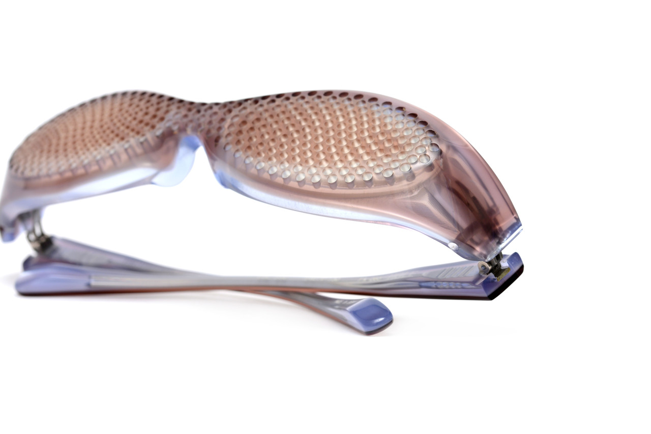 6カーブ設定のフロントは圧倒的な存在感を放ちますが、多彩なカット面がその勢いを殺さず、お顔との一体感を演出します。カラーレンズを組み合わせ、サングラスにしてもカッコイイかと。また、本来裏メニューであるマット加工との相性の良さはいうまでもありません。