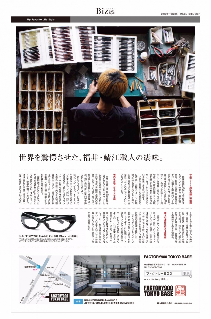 2016年11月25日 メディア掲載 [ビズスタ東京]に掲載していただきました 日本経済新聞に折り込まれるBiz Life Style[ビズスタ東京]に、青山眼鏡の特集を掲載していただきました。(11/25付)