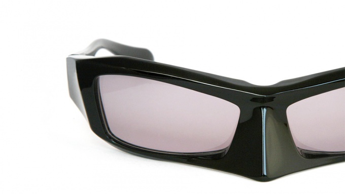 フロントと鼻梁が一体型という斬新なスタイルを提案した「マスク」は、デザイナ―・青山の「誰も見たことがないカッコいい眼鏡を作りたい」という想いから生まれました。まるで仮面のような立体造形は世界でも類を見ない高度なアセテート加工技術で実現しました。