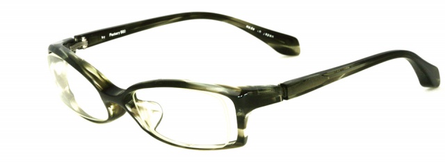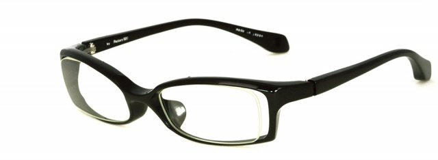 ベーシックな「フローティングスタイル」の横長スクエア。8mmのアセテート生地から削り出しているため、強度が高いのがメリットのひとつ。ブリッジからヨロイにかけて生地の厚みを変え、ヨロイを曲げて大胆にカットすることで細身ながらも立体的な造形を表現しました。