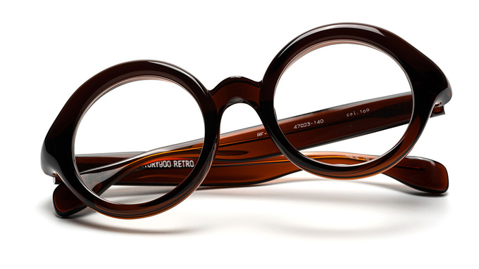 まるでタイヤの様な、丸みを帯びたチューブ状のフロントリムがそのままテンプルまで繋がった特徴的なモデル。角を立てず、断面形状を丸にしメガネとしての輪郭線がなくなる様にデザインされた。磨き上げられた艶やかな面は、曲線だけのフレーム形状に相反して個性が引き立つエッジの効いた印象に。一般的なラウンドシェイプの枠に収まらない独特の存在感のあるフレームに仕上がっている。