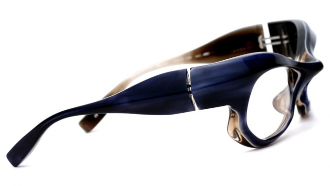 ブリッジ部分から勢いよく描かれるブロー造形。その造形のまま三角形の極太のテンプルへと繋がっていく流麗なライン。