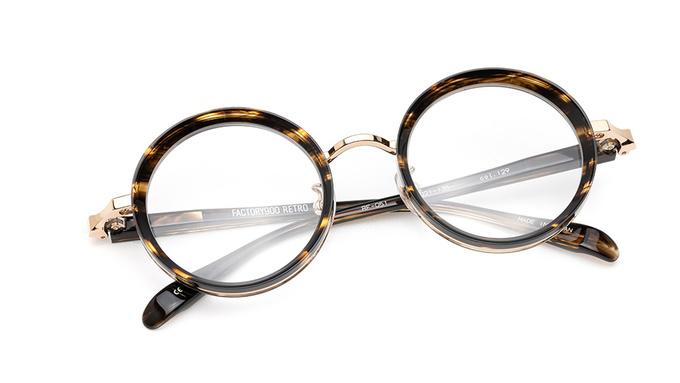 無機質な印象になりがちなメタルのフロントに、テレビジョンカットを施したアセテートを組み合わせエッジを効かせた。異素材との組み合わせにより、アセテートの持つ質感を最大限に活かし、RETROの世界観に新しい表情が生まれた。やや大きめのラウンド型は様々なファッションに取り入れやすく、個性を引き出してくれる。