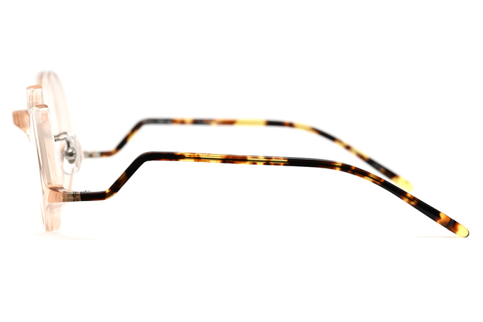 女性に使ってもらうことを大前提にしていますので、フレームの横幅やテンプルの長さなど女性に似合うように作ってます。また眼鏡を印象づける黒いラインも、極細ラインに仕上げてあるので、本当にシンプルに掛けていただけると思います。『薄く・軽く・シンプルに』是非、手に取ってみてください!!